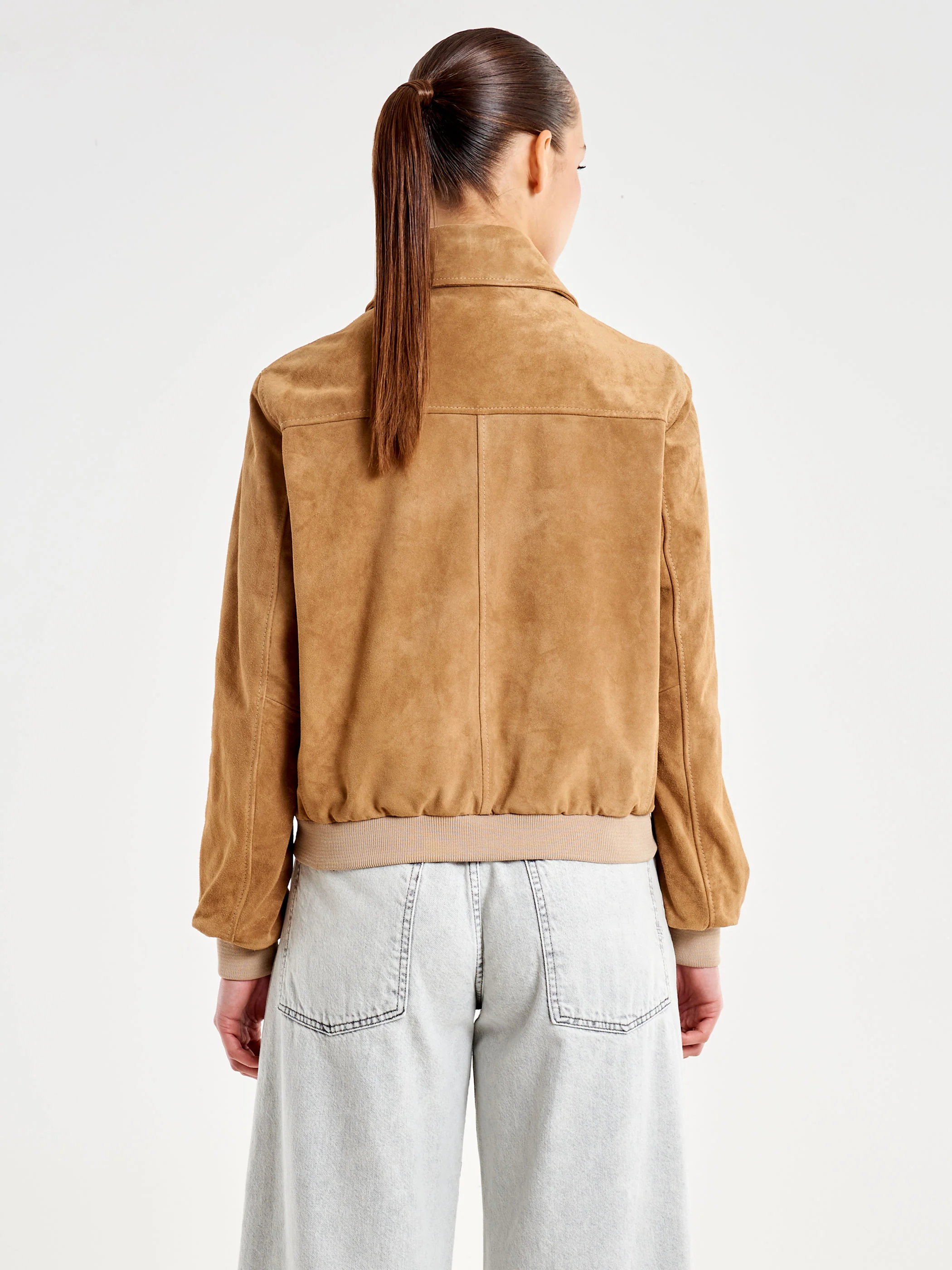 Bomber Corto Scamosciato in Vera Pelle