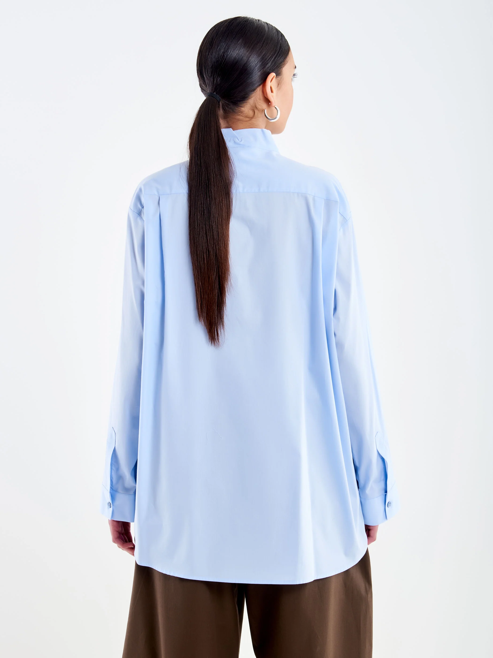Camicia in cotone maniche lunghe allacciata sul collo. Chiusura con bottoncini.