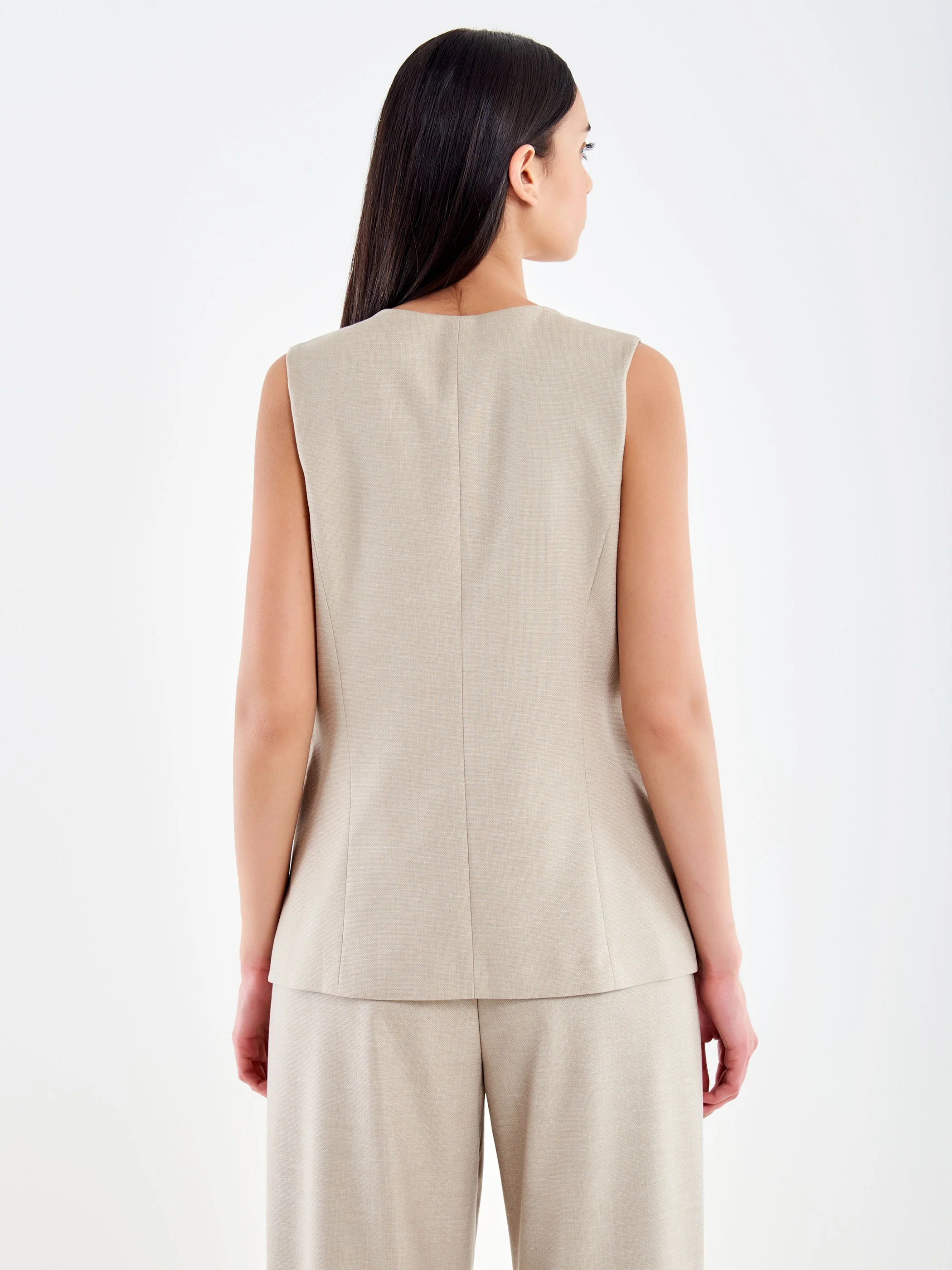 Gilet scollo a con abbottonatura nascosta. Con pattine frontali applicate.Â