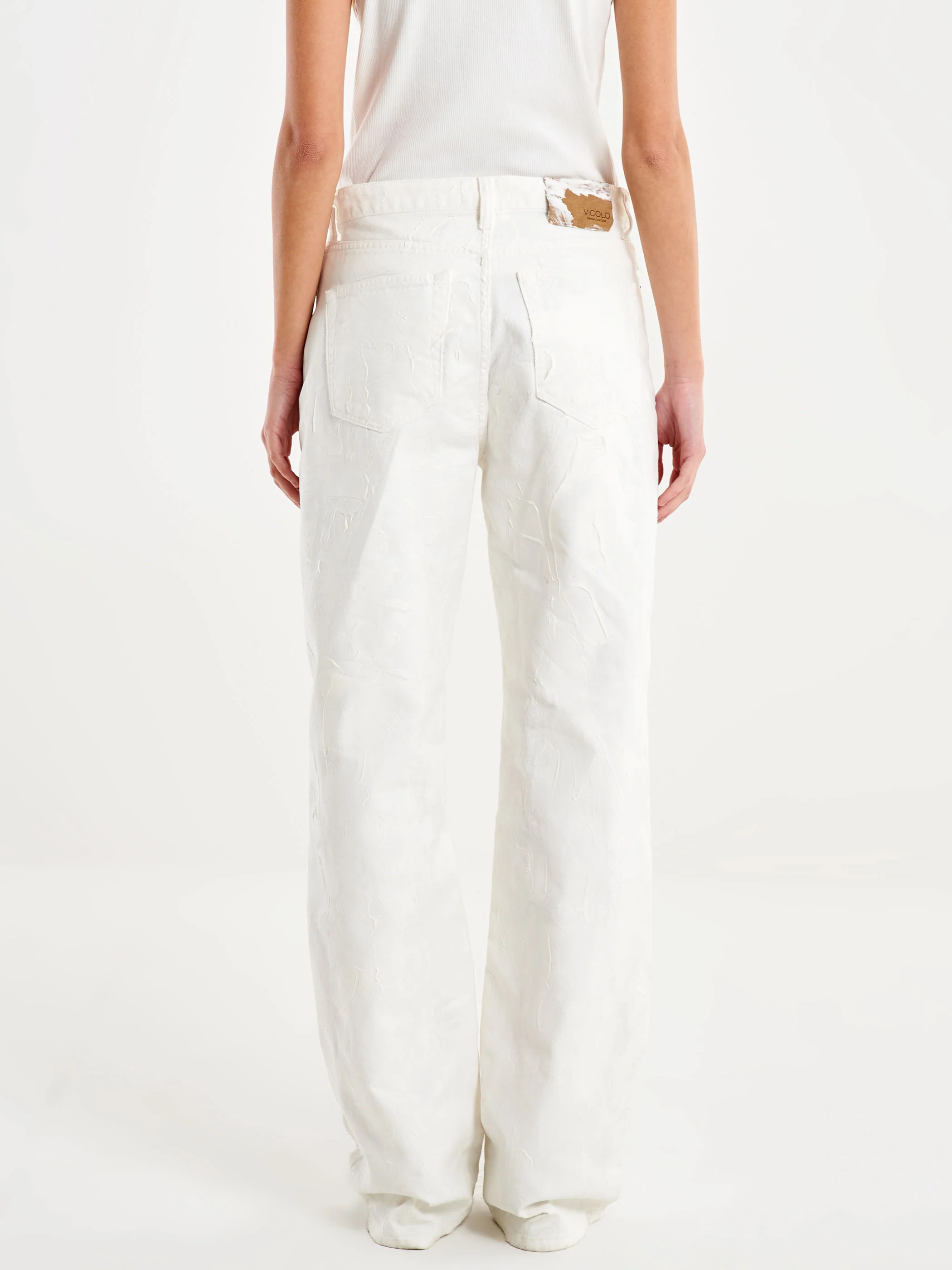 Jeans a vita regolare. Modello cinque tasche. Relaxed Fit, gamba lunga. Chiusura con zip e bottone in metallo. Dettaglio stucco all over.
